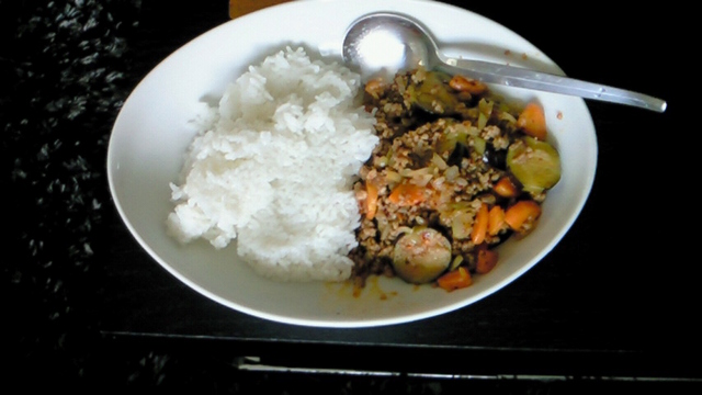 昨日の余り食材で茄子とひき肉のピリ辛炒め。