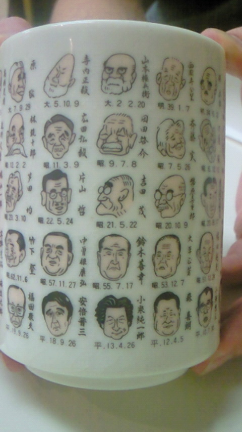 歴史的な政権交代ですから、この歴代首相が載ってる湯呑みを見ると益々大きな出来事だなとつくづく思います。