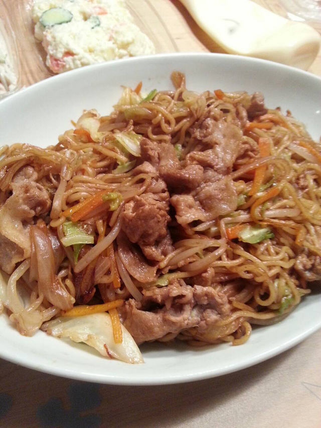 ひとりぼっちのクリスマスに手作り焼きそば(後ろ惣菜)